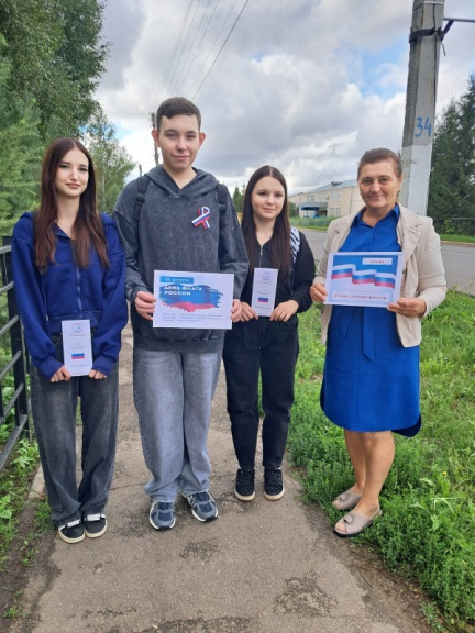 В Рамках Дня Государственного флага сотрудники Центральной библиотеки провели акцию «России славный триколор». Они вышли на улицы села, чтобы поделиться радостью и гордостью за нашу Родину с каждым прохожим. Они вручали информационные буклеты, рассказывающие историю праздника и значение каждого цвета российского триколора — белого, синего и красного. Каждый получил памятную ленточку в цветах государственного флага.